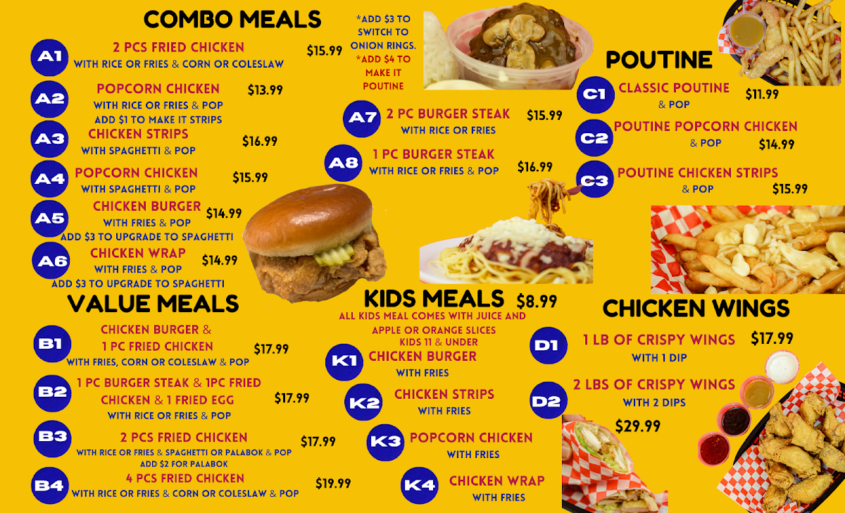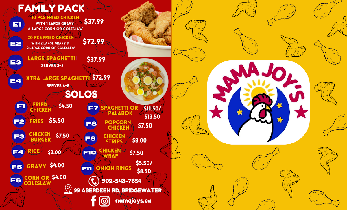 Welcome to Mama Joy's, a delightful culinary gem located in Bridgewater, NS. This cozy restaurant specializes in authentically prepared comfort food that evokes the warmth of home. The menu features an enticing array of combo meals, including the popular Chicken Wrap paired with golden fries and your choice of soda, or delicious Chicken Strips served with saucy spaghetti and melted cheese. Each dish is crafted with love, as highlighted by reviews praising the crispy yet tender chicken and robust flavors.